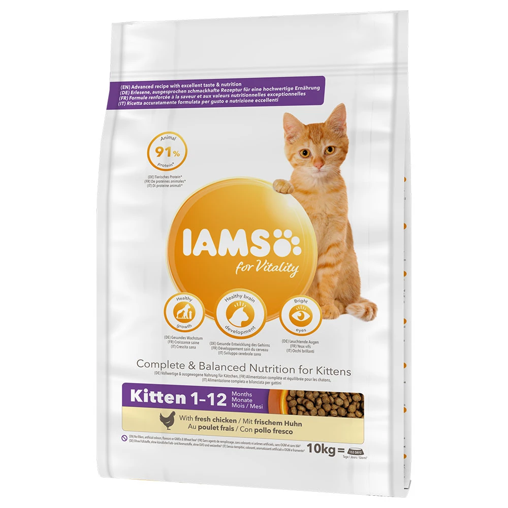Iams kattenvoer is een premium-droogvoer met een volle en rijke smaak. De Dental Care Formule bij Iams kattenvoer zorgt voor gezonde tanden bij je kat. Kattenvoer zonder kleur- en geurstoffen of toegevoegde conserveringsmiddelen. Met IAMS droogvoer verwen je jouw kat iedere dag opnieuw met dit evenwichtige droogvoer.. Dit voer heeft een groot aandeel aan dierlijke eiwitten (89%), bevat geselecteerde ingrediënten, scoort goed door de heerlijke smaak en ondersteunt de vitaliteit van je kat op allerlei manieren. De receptuur van dit kattenvoer is ontworpen om de 7 tekenen van een gezonde vitaliteit te ondersteunen. Dit voer kan bijdragen aan een gezonde huid en glanzende vacht, sterke spieren, een goed immuunsysteem en een gezond hart. Bovendien bevordert de samenstelling een gezonde spijsvertering, terwijl de knapperige structuur en de aangepaste hoeveelheid mineralen kunnen bijdragen aan de gezondheid van het gebit. Het voer is tarwevrij en wordt zonder de toevoeging van kunstmatige geur- of kleurstoffen gemaakt. Sla nu je slag! Je bestelling van 10 kg lAMS droogvoer is nu tijdelijk extra voordelig met 10% korting! Let op: deze aanbieding is enkel geldig onder artikelnummer 1403522 zolang de voorraad strekt. Een afgebeelde variant kan reeds uitverkocht zijn en daarom niet meer beschikbaar zijn in combinatie met de aanbieding IAMS droogvoer in één oogopslag: ondersteunt de 7 tekenen van een gezonde vitaliteit: sterke spieren: hoogwaardige dierlijke eiwitten en essentiële mineralen helpen bij het behoud van sterke spieren gezonde spijsvertering: een aangepast mengsel van vezels met prebiotica en bietenpulp draagt bij aan een gezonde spijsvertering gezondheid van de urinewegen: receptuur voor het verlagen van de pH-waarde in de urine sterk hart: bevat taurine, wat kan bijdragen aan de versterking van het hart krachtig immuunsysteem: antioxidanten en vitamine E ondersteunen het lichaamseigen afweersysteem gezonde tanden: de knapperige structuur en de aangepaste hoeveelheid mineralen kunnen de gezondheid van de tanden bevorderen een glanzende vacht en een gezonde huid: wordt ondersteunt door omega 3- en omega 6-vetzuren wordt zelden afgewezen: heerlijke smaak met dank aan de verbeterde receptuur met verse kip en geselecteerde ingrediënten zonder toevoeging van tarwe en kunstmatige geur- en kleurstoffen knapperige brokjes: grootte aangepast aan de kattenbekjes, makkelijk om op te pakken en te kauwen hersluitbare zak