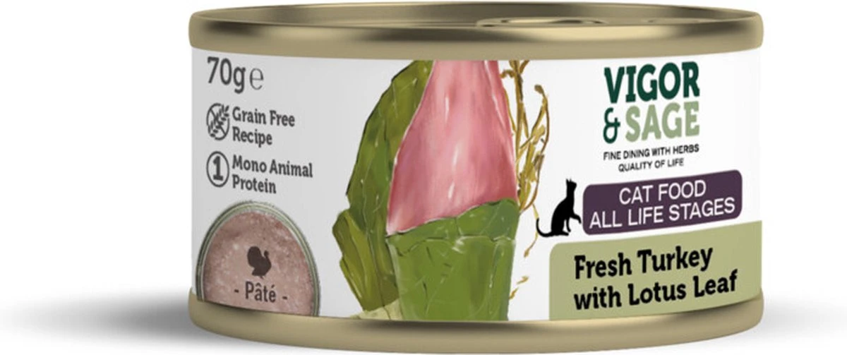 Vigor & Sage Kattenvoer Vers-in-Blik Kalkoen β Lotus Leaf