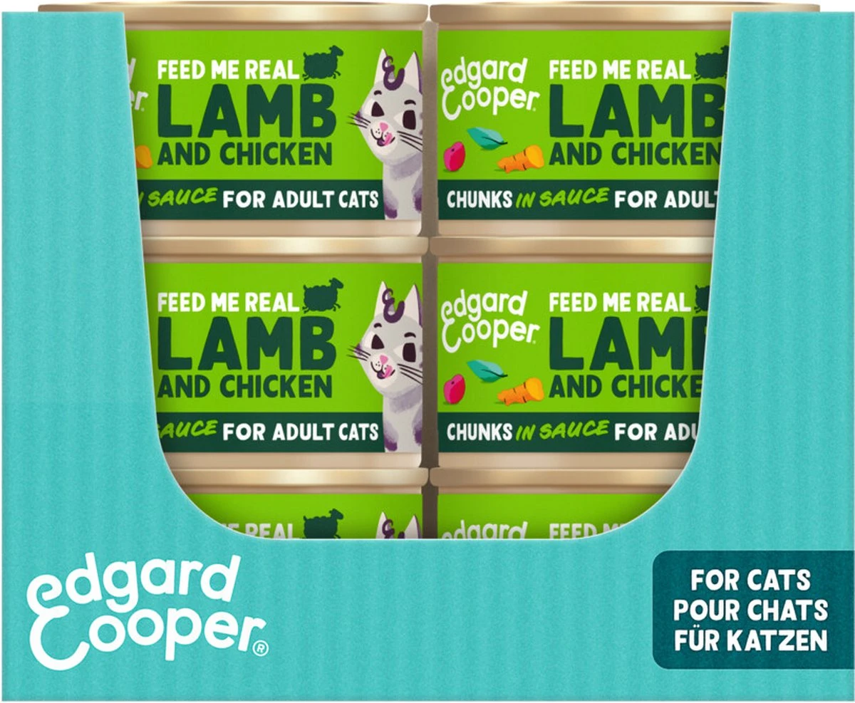 De sappige stukjes in saus van Edgard & Cooper zijn een feest voor de smaakpapillen van je kat. Dit volwaardige recept zonder junkfood is ideaal voor volwassen katten, Γ³Γ³k als ze gesteriliseerd zijn. De smakelijke mix van lekkerrr lam en vrije-uitloopkip in een saus om pootjes en snorharen van af te likken, doet je kat spinnen van plezierrr.