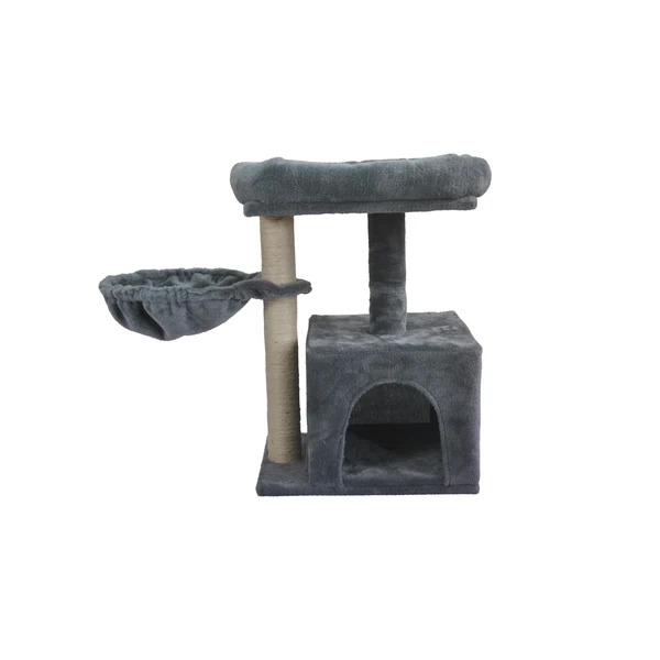 De Krabpaal Nibbles is met zijn 60 cm een kleine krabpaal voor je kat (of katten). Deze krabpaal bestaat uit meerdere krab-, klim-, speel- en slaapplekken zoals een fijn slaapholletjes, een heerlijk mandje bovenop en een hangmat aan de zijkant. Vanaf het bovenste mandje kan je kat goed zijn omgeving in de gaten kan houden. De krabpaal is grijs van kleur.