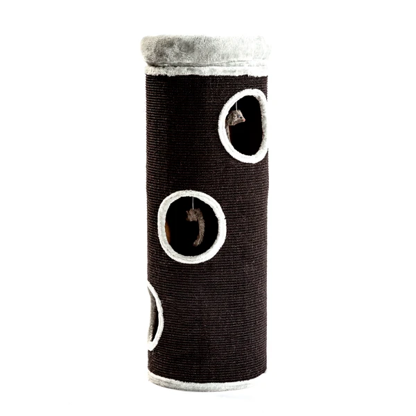 De Krabton Pascal Zwart van Adori heeft een afmeting van 45 x 100 cm en is een mooie toevoeging aan je interieur. Deze krabton bevat drie openingen waar je kat in kan kruipen. Binnenin vindt je kat twee heerlijke slaapplekken en een gat om door de krabton te navigeren, plus een twee hangende muisjes om mee te spelen. De bovenkant bevat een zacht pluche oppervlak met fluffy rand waar je kat op kan slapen of rusten. De buitenkant van de krabton is bekleed met sisaltouw om aan te krabben. Zo biedt de Pascal Zwart oneindig veel krabplezier voor je kat! Deze krabton is zwart met grijs van kleur.