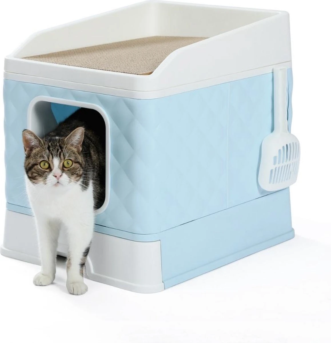Wilt u een eigen omgeving voor uw kat met genoeg ruimte? Met de kattenbak van Amex geeft u uw kat een veilige en vertrouwde omgeving om zijn behoeftes te doen én tegelijkertijd een leuke plek voor hem of haar om in het huis te spelen en zich goed te voelen. Het opruimen voor uw kat wordt u extreem makkelijk gemaakt door middel van de schuifbare lade aan de onderkant van de zelfreinigende kattenbak. De kattenbak is voorzien van meerdere ingangen en een krabbaar dak zodat uw kat zich altijd fijn voelt in de omgeving van de kattenbak. Het anti-zand lek design en het haakje voor de kattenbak schep zorgen voor een fijne en eenvoudige gebruikerservaring.