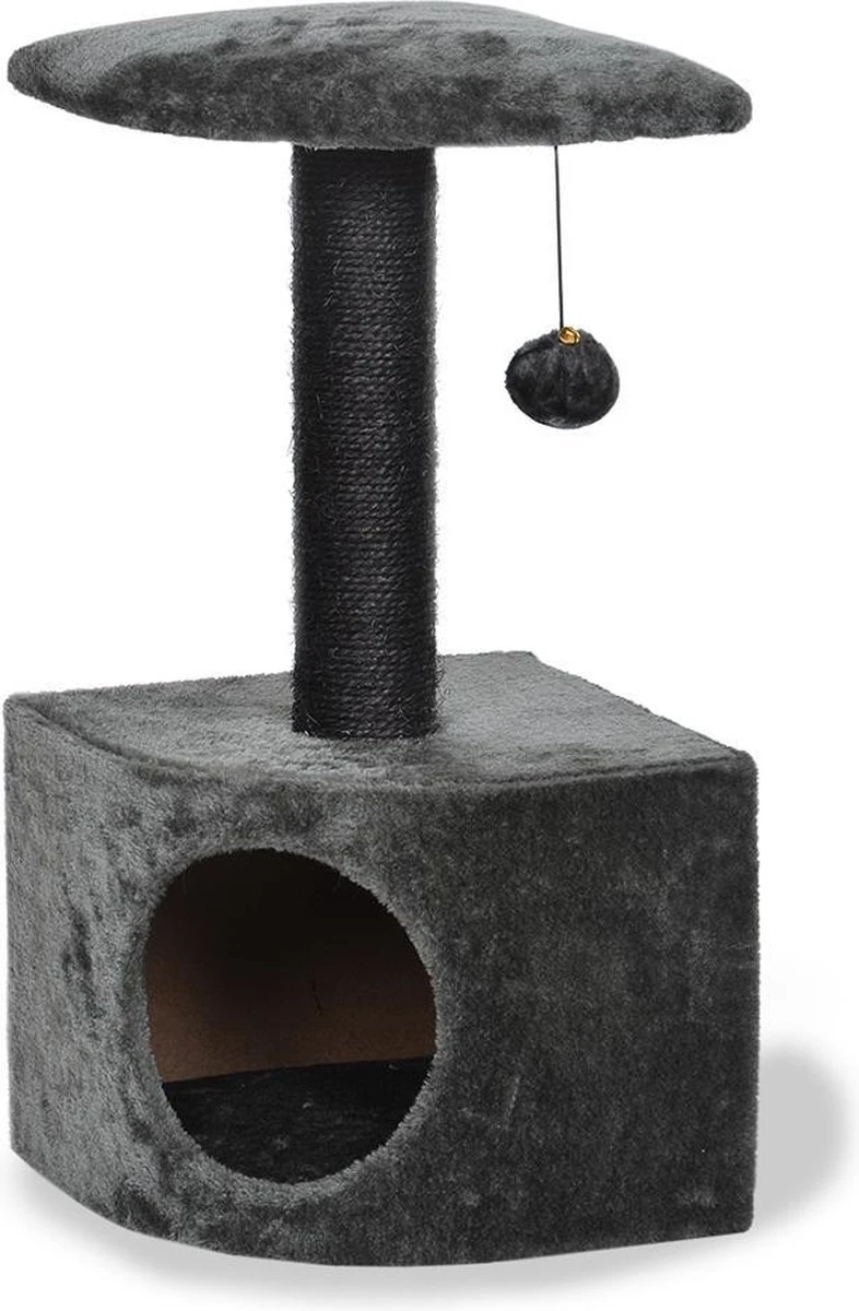 Heb je minder ruimte, maar wil je toch een fijne krabpaal voor je kat in de kamer zetten? Door de handige vorm van deze krabpaal, past hij precies in de hoek van je woonkamer. Hierdoor neemt hij minder ruimte in beslag. Toch is hij van alle gemakken voorzien: een slaaphuisje, een slaapplank, een fijne sisalpaal, een speelballetje en een pluche afwerking. Kortom, een mooie compacte krabpaal om je kat een fijne krabplek te geven!