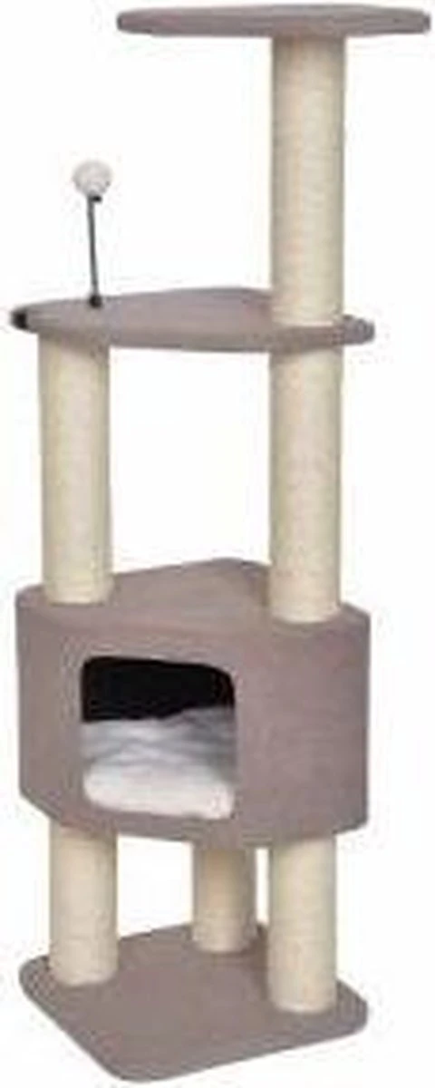 EBI Krabpaal Akita grijsAfmeting: 37 x 37 x 111 cm.Sisalpaal: 9 cmSisal: 5,2 mm Katten hebben een kwaliteitsvolle krabpaal nodig om hun nagels te scherpen en hun territorium af te bakenen. Sisal is een natuurlijke en zeer sterke vezel die de kat helpt om de schilferige bovenste laag van de nagels te verwijderen. Dat voorkomt dat de nagels ingroeien. Daarom is een krabpaal een must voor elke kat! De βAkitaβ-kattenboom van EBI is een Nederlands ontwerp, geΓ―nspireerd door het Japanse zen-concept. De esthetiek van deze paal geeft kalmte en minimalisme weer. Deze paal is bekleed met een zachte interieurstof en past dan ook uitstekend in elk interieur. Deze paal bevat een grot met een kussen in teddyvacht waar uw kat uiterst comfortabel kan slapen. Bovenaan zijn er twee ligplatformen, elk met een tunnel met kussen. Daardoor is de paal het ideale luilekkerplaatsje voor uw kat. Specificaties: Nederlandse design krabpaal Met Japans zen-concept als inspiratiebron Bevat twee buizen en een grot om in te relaxen Interieurstof met comfortabele mousse Grot met kussen in teddy-vacht
