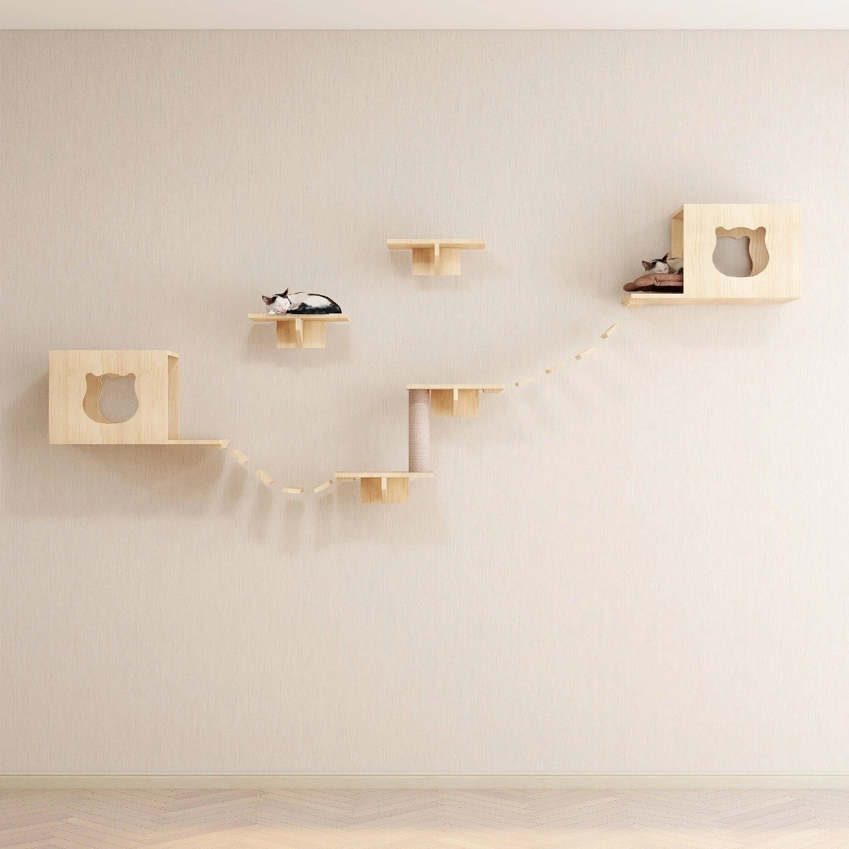 Upgrade het speel niveau van je harige vriend, letterlijk en figuurlijk met onze Wall Cat Climbing set. Deze complete set wordt geleverd met twee comfortabele kattenhuisjes, vier stevige platformen, twee leuke ladders en één duurzame kattenklimpaal. Het is perfect om je katten bezig en actief te houden, terwijl je ook een stijlvolle touch aan je huisdecoratie toevoegt. Geef je huisdieren dus het cadeau van een spannende en veilige klimervaring met onze hoogwaardige Wall Cat Climbing set van SpirePets.