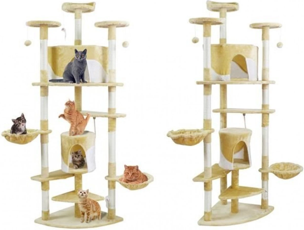 Katten krabpaal 200 cm – 6 etages – zacht velours – urenlang speelplezier – kattenhuisjes – 5 platformen – kado tip