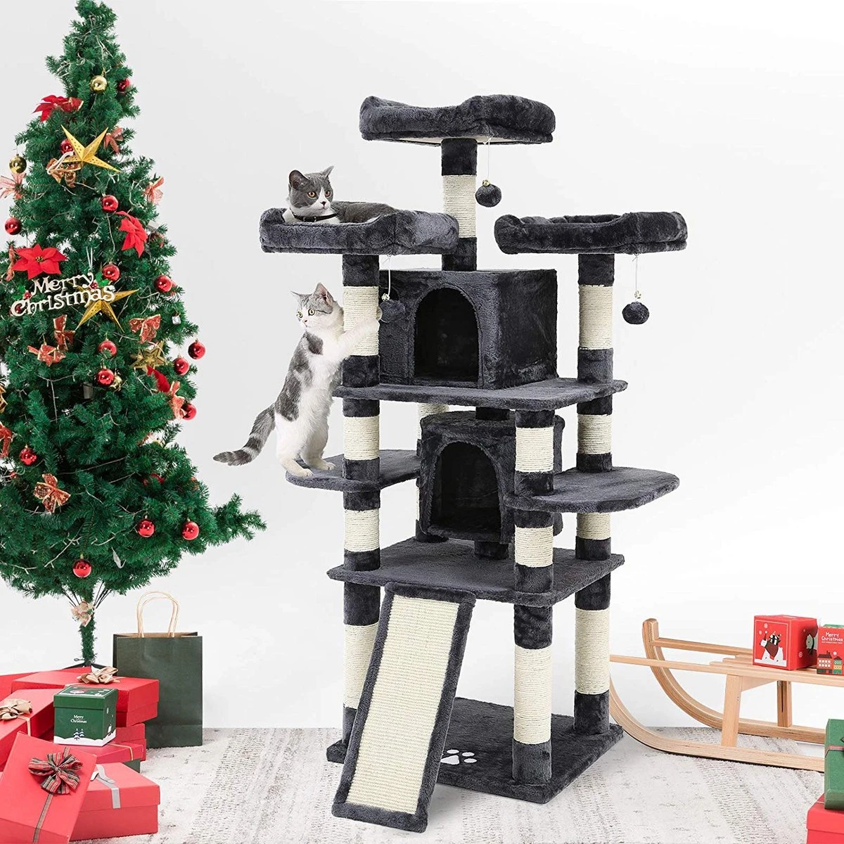 Haal een compleet kattenparadijs in huis met deze luxe XXL krabpaal! De volledig uitgeruste krabpaal biedt veel speel- en krabplezier en verschillende verstopplekjes voor jouw favoriete viervoeter. Met verschillende kattenhuisjes, krabstammen van sisal, uitzicht plateaus en mandjes is dit de ultieme speeltuin voor jouw kat of katten.