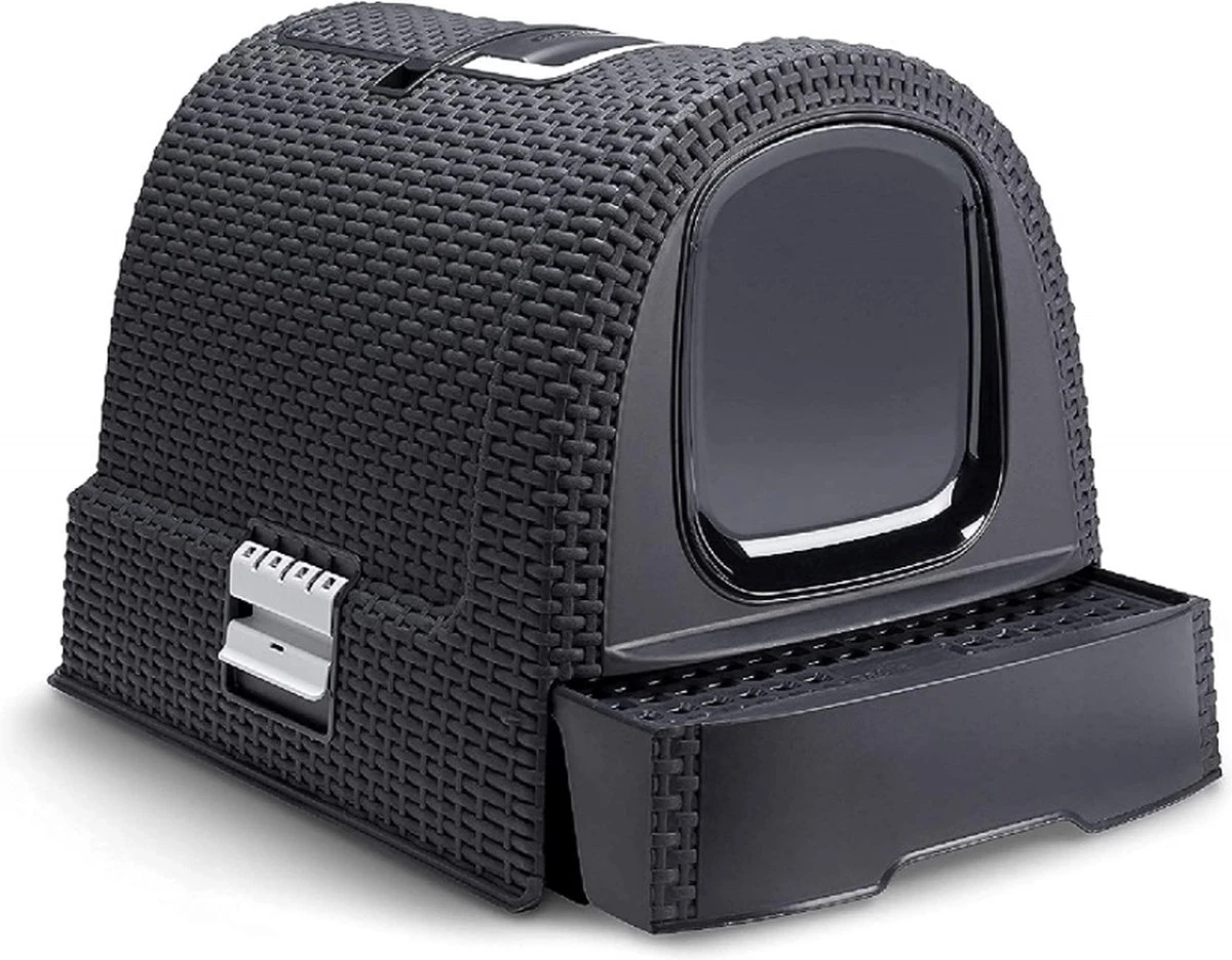 De kattenbak is gemaakt van het oersterke materiaal rattan, op basis van een hoogwaardig gevlochten kunststof.