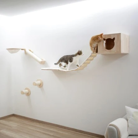 Wandkrabpaal Wall Anden- 7-Delig Wandkrabpaal Wall Anden bestaat uit 7 delen is helemaal naar eigen wens op te hangen. Hierdoor kan je je eigen katten klimparadijs creeeren. Doordat de delen allemaal aan de wand bevestigd worden neemt het weinig ruimte is beslag en kan je net ze ver de hoogte en breedte in als je wilt. Ook is deze wandkrabpaal verder uit breiden met de andere wandkrabpalen op onze website. Je hebt dus volop mogelijkheden.