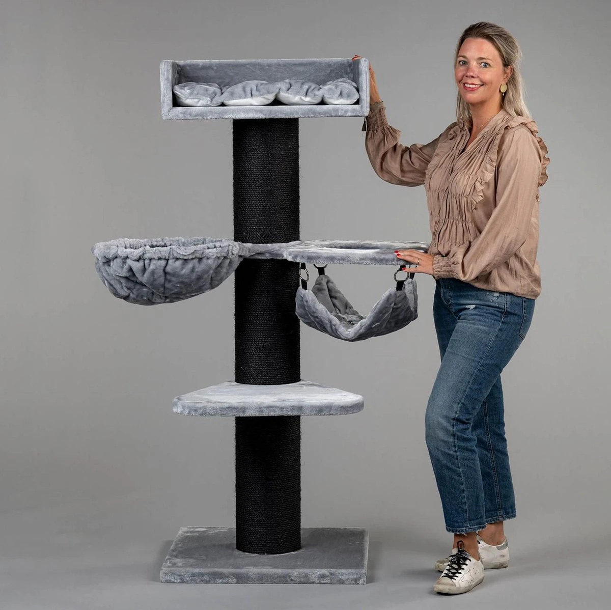 Door zijn hoogte van 155 cm een ideale krabpaal voor in uw woonkamer en een ideale uitkijk en relaxplek voor uw kat.