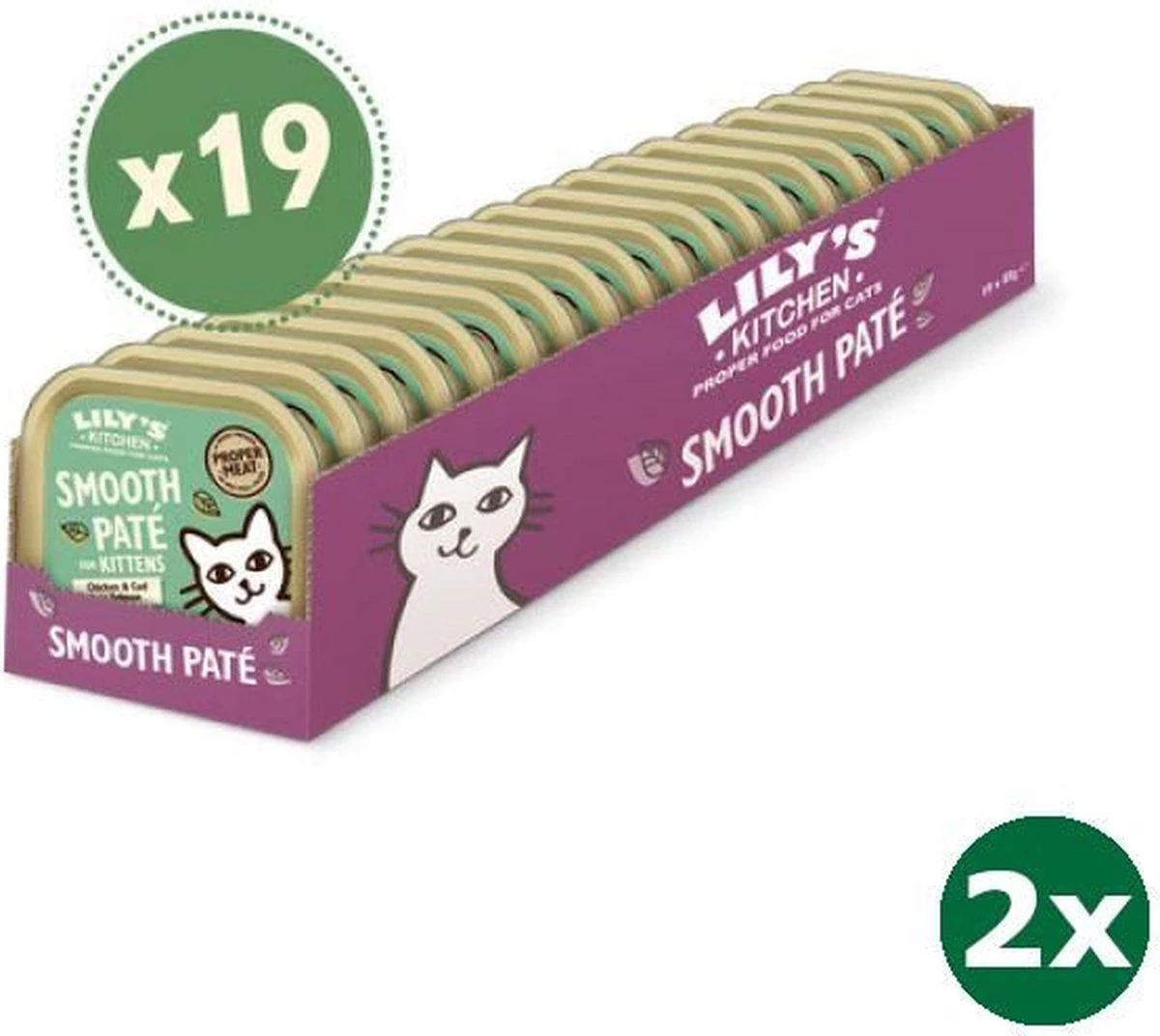 Lily’s Kitchen Cat Kitten Cod Pate 19×85 grDe Lily’s Kitchen Cat Kitten Cod Pate 19×85 gr is compleet kattenvoer voor kittens vanaf twee maanden, met zalm en kabeljauw in een romige pate. Deze heerlijke maaltijd is alles wat jouw kitten nodig heeft om zich klaar te kunnen stomen voor de rest van haar negen levens! De zalm en kabeljauw zijn op verantwoorde wijze gevangen en vers bereid. Het gehele recept is graanvrij en zonder toegevoegde suikers. Deze heerlijke, romige pate is een complete maaltijd met natuurlijke ingrediënten.- Kattenvoer voor kittens vanaf twee maanden- Romige pate gemaakt van natuurlijke en verse ingrediënten- Graanvrij en zonder toegevoegde suikers- Verantwoord gevangen zalm en kabeljauwInhoud: 19 x 85 grSamenstelling: 65% vers bereid: 24% kip, 19% vis (14% kabeljauw, 5% zalm), 19% varkensvlees, mineralen, Zalmolie, AlgenAnalytisch