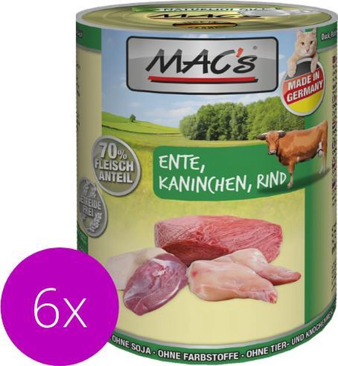 MAC’s kattennatvoer met Eend, Konijn & Rund een smaakvolle vers vlees combi voor katten