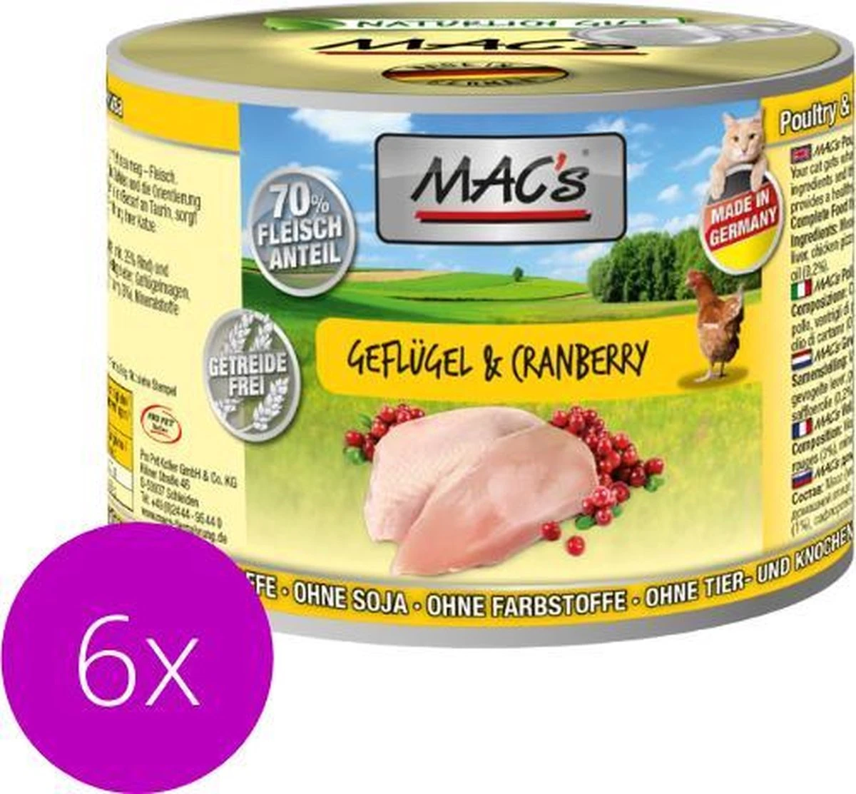 MACβs kattennatvoer met gevogelte & Cranberry is een graanvrij en zeer goed verteerbaar kattenvoeding.