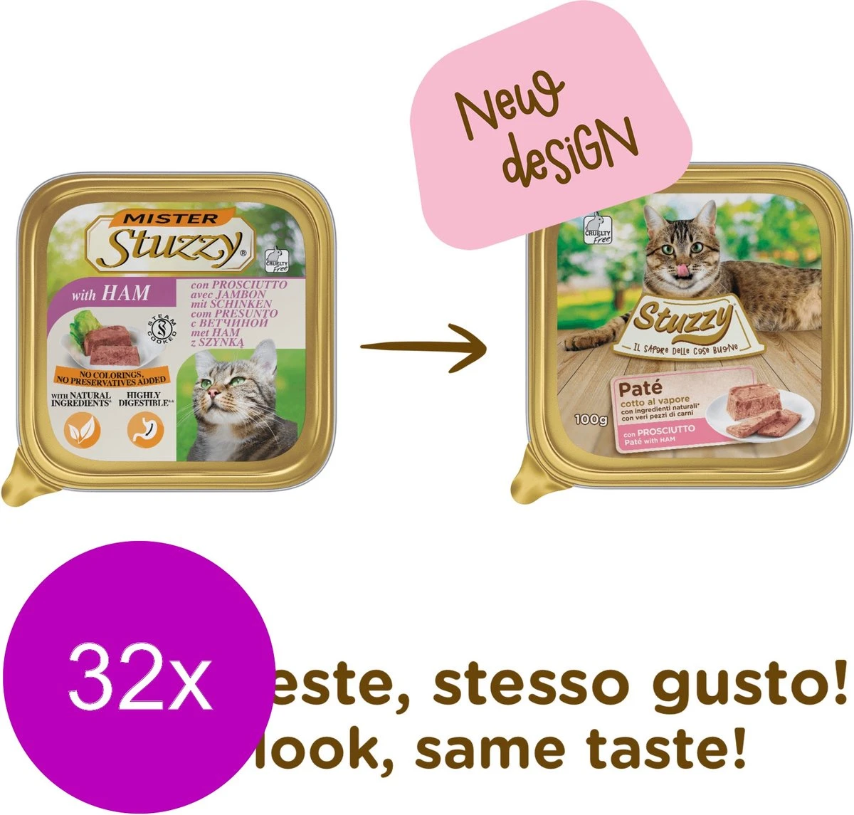 Mister Stuzzy Cat PatΓ© Ham β Kattenvoer β 32 X 100 G