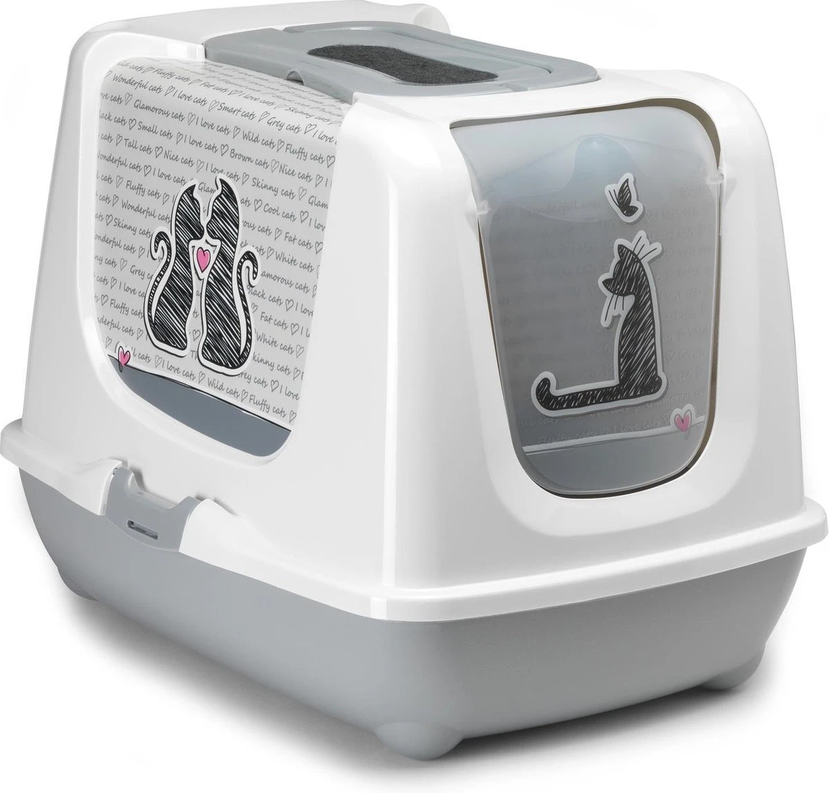 De Trendy Cat Cats in Love is een moderne kattenbak in een leuk, trendy design. De bak heeft een transparant klepje waar een liefdevolle tekst en een dromerige kat opgedrukt staan. Ook de zijkant is voorzien van een romantisch design met twee verliefde katten.