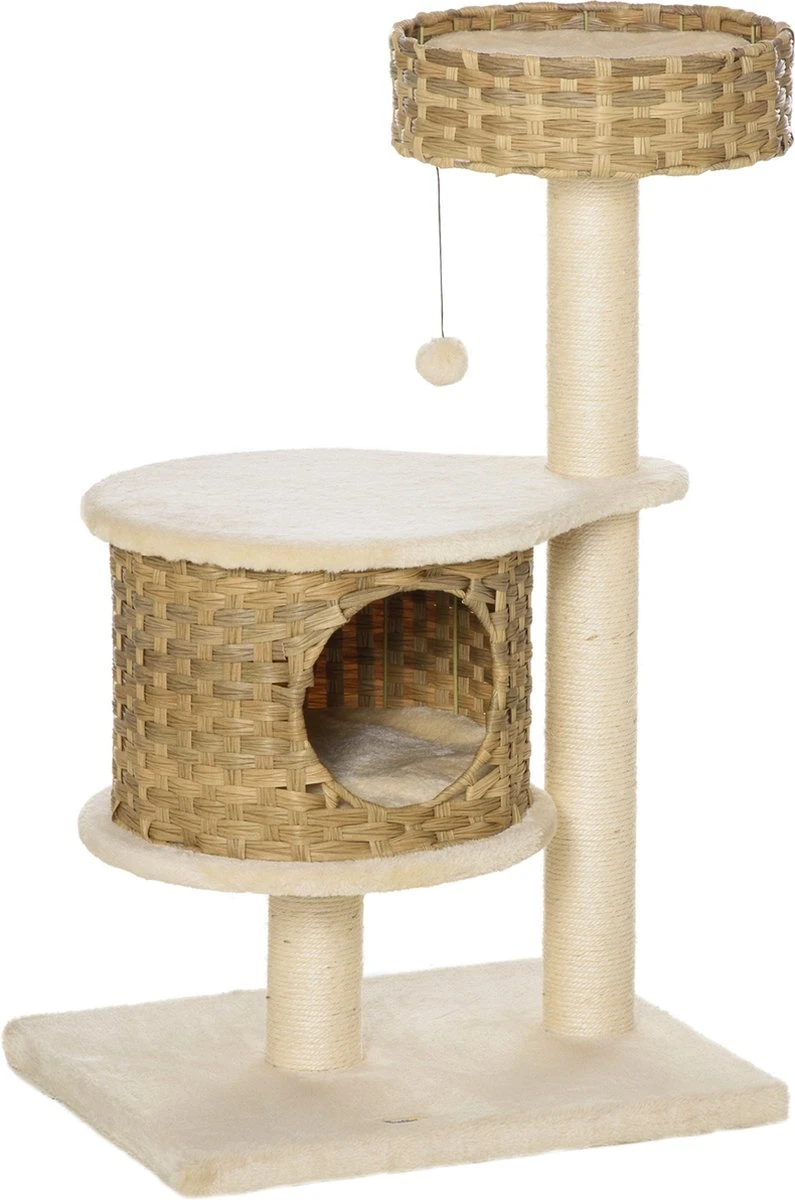 Bevredig op een veilige manier de natuurlijke instincten van je kat met deze krabpaal ! Bevredig op een veilige manier de natuurlijke instincten van je kat met deze krabpaal ! Dit multi-activiteitencentrum heeft een krabpaal met sisal, een kattenhuis van PE rotan, zitstokken en een hangende bal voor veel speelplezier. Zowel het huisdier als zijn baasje hebben voordeel bij de kattenkrabpaal, omdat het een plek is waar katten naar hartenlust kunnen krabben en klimmen, zodat je tapijt en meubels worden beschermd tegen beschadigingen.