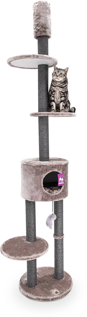 Ben je op zoek naar de alleskunner onder de krabpalen? Dan is krabpaal Anna 240 echt wat voor jou! Dit kattenmeubel is namelijk geschikt voor elk type en kattenras en er kunnen meerdere katten in spelen en slapen. Jouw Royal Rebels kunnen er ook heerlijk uitgebreid aan krabben of zich verstoppen in het slaaphuisje. Ook fijn: deze koninklijke krabpaal ziet er supermooi uit en neemt heel weinig ruimte in beslag. Kan gespannen worden tegen plafonds van 240 tot 265 centimeter.