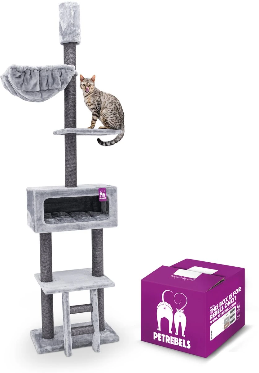 Ben je op zoek naar de alleskunner onder de krabpalen? Dan is krabpaal Diana 260 echt wat voor jou! Dit kattenmeubel is namelijk geschikt voor elk type en kattenras en er kunnen meerdere katten in spelen en slapen. Jouw Royal Rebels kunnen er ook heerlijk uitgebreid aan krabben of zich verstoppen in het moderne designhuis. Ook fijn: deze koninklijke krabpaal ziet er supermooi uit en neemt heel weinig ruimte in beslag. Kan gespannen worden tegen plafonds van 240 tot 260 centimeter.