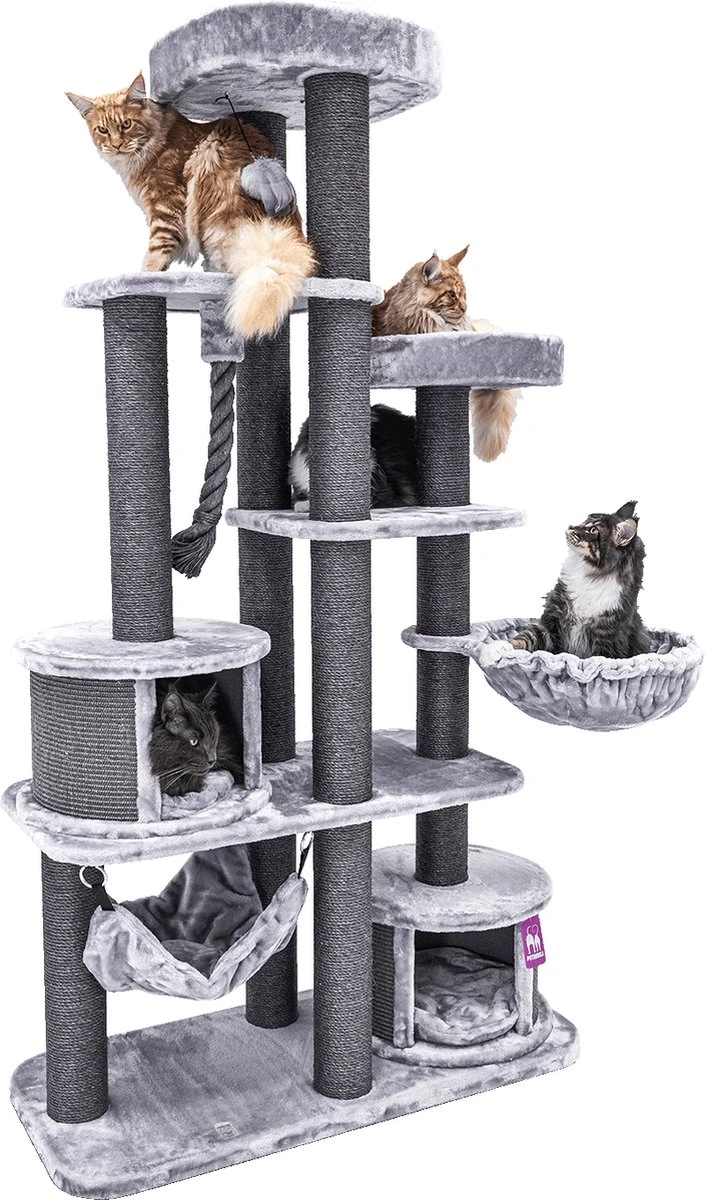 Heb je een Maine Coon, Noorse Boskat, Ragdoll of ander groot kattenras? Dan heb je een extra sterk krabmeubel nodig, want deze katten hebben behoefte aan dikke krabstammen en ruime slaapplaatsen. Met onze Scenic View 197 zit je gebakken! Dit klimparadijs is namelijk ontworpen om grote รฉn kleine katten te verwennen met lekker veel slaapplekjes en krabstammen van maar liefst 12 centimeter dik. En daarbij zijn de prachtige kleurencombinaties en het stoere design ook nog eens een lust voor het oog!