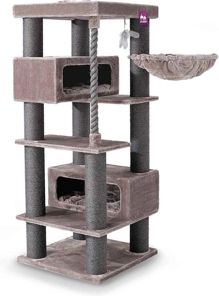 Turnpike 190 is het gaafste kattenhuis in ons assortiment. Ze heeft strakke rechte vormen, fluweelzachte kussens en oneindig veel knusse slaapplekjes. Heel aaibaar dus, net als je kat! Maar tegelijk is ze ook robuust en stoer. En ze kan wel tegen een stootje. Dat komt doordat ze een extra dikke bodemplaat heeft en krabstammen van maar liefst 15 centimeter dik. Zoek je een echt kattenhuis voor jouw prins of prinses? Dan is onze Turnpike 190 een supergoede keus!