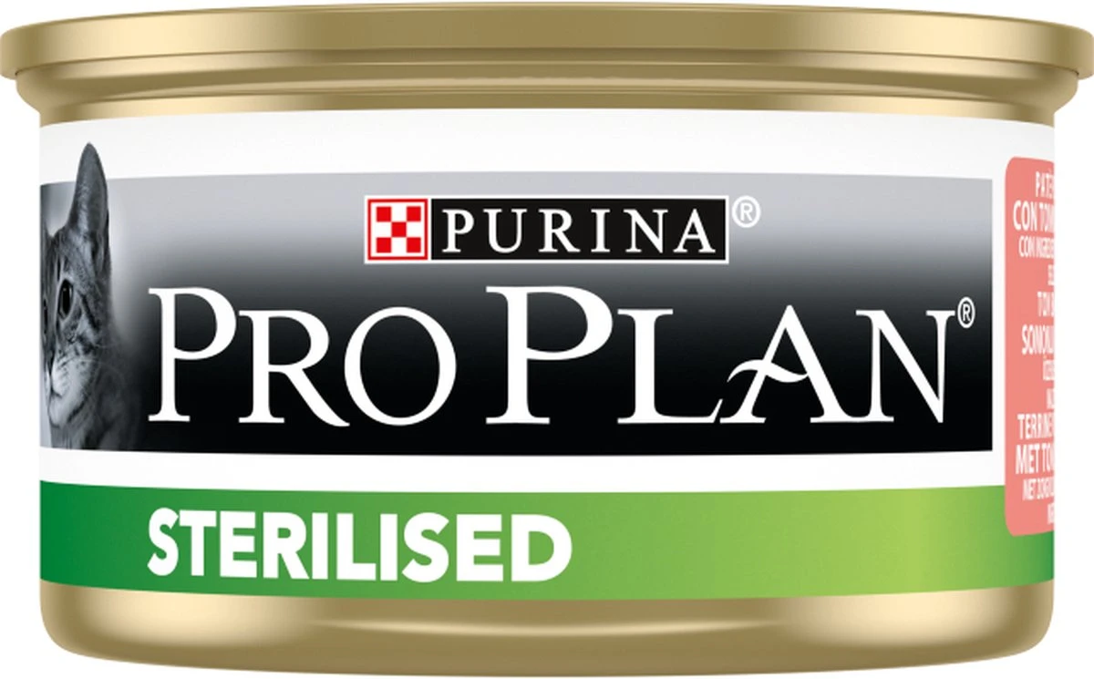 PURINAยฎ PRO PLAN Sterilised Adult Terrine is heerlijk bereid met tonijn en zalm waar jouw kat van zal genieten. Het kattenvoer is speciaal samengesteld voor gesteriliseerde en gecastreerde katten.