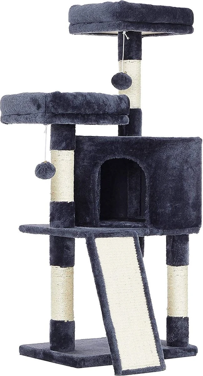Urenlang krabplezier: de 5 boomstammen zijn in sisal gewikkeld. Hier en op de grote krabplank kan je kat naar hartenlust zijn klauwen scherpen. Bovendien blijven je meubels de klauwen van je lieveling bespaard – het meubilair zegt dank je wel!