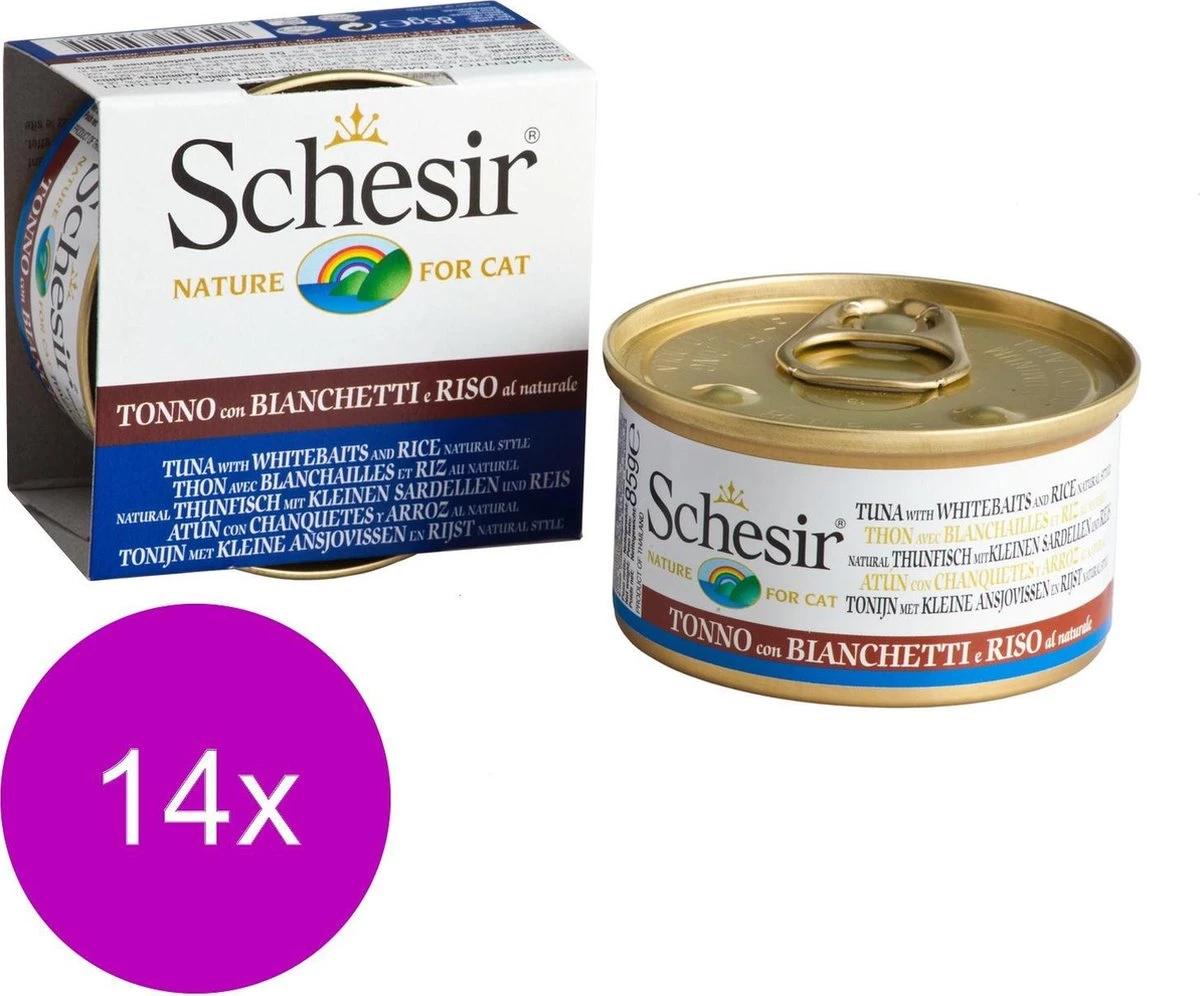 Schesir Kat Blik Gekookte Vis 85 G – Kattenvoer – 14 X Tonijn&Ansjovis&Rijst