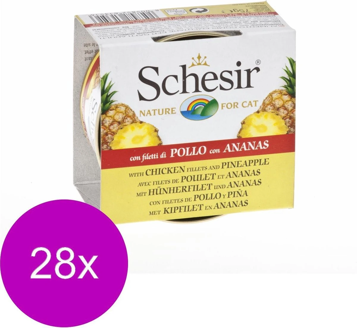 Schesir Kat Blik Gelei 75 G – Kattenvoer – 28 X Kip&Ananas