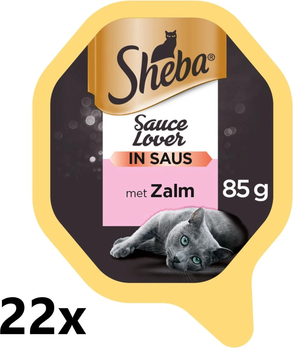 Sheba Sauce Lovers Kuipjes bevat 85 g en is verkrijgbaar in de smaken tonijn en zalm.