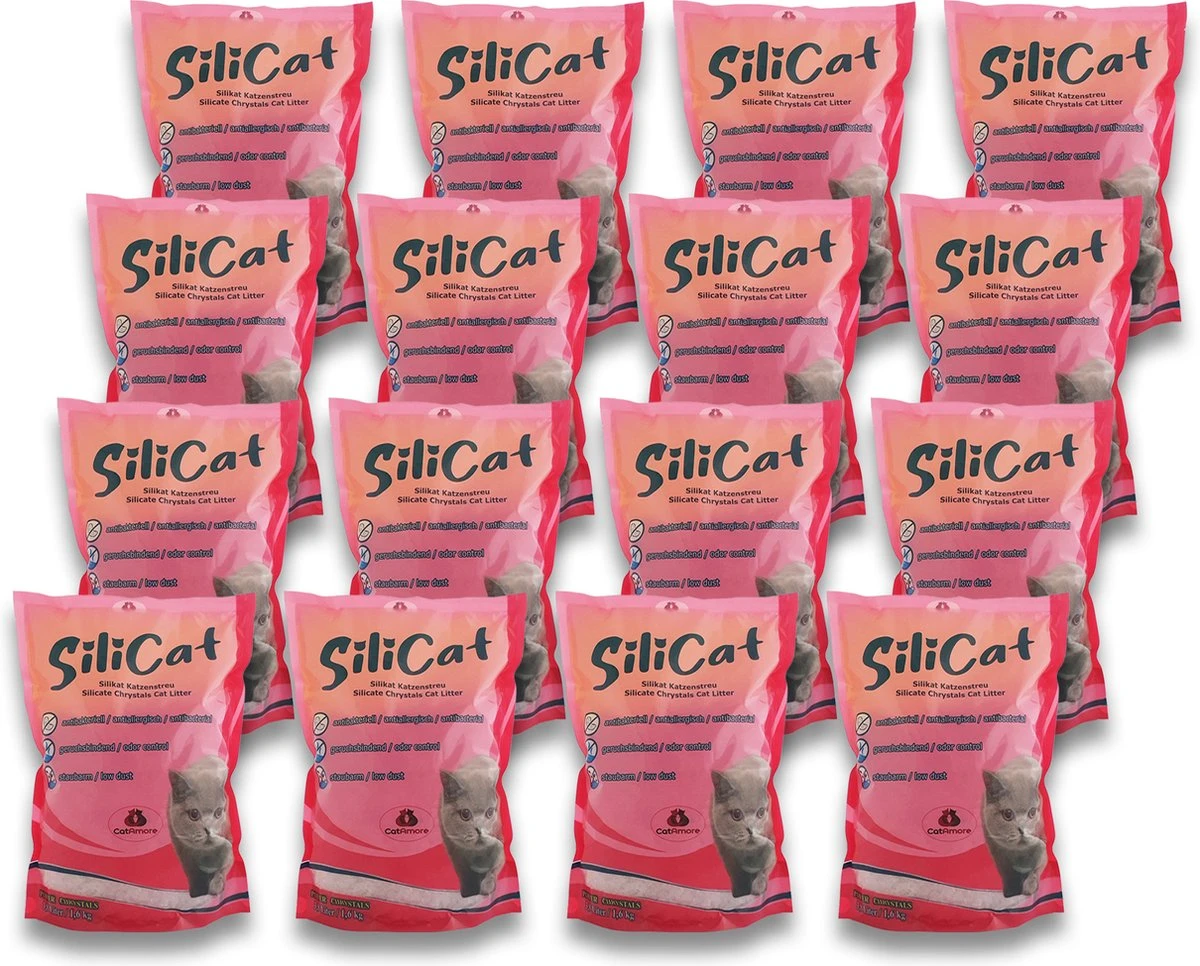 SiliCat Premium Silica kattenbakvulling β absorbeert veel vocht β voorkomt geurtjes door antibacteriΓ«le werking β biologisch afbreekbaar β 99% stofvrij β zuinig β voordeel bundel 16x 3,8L