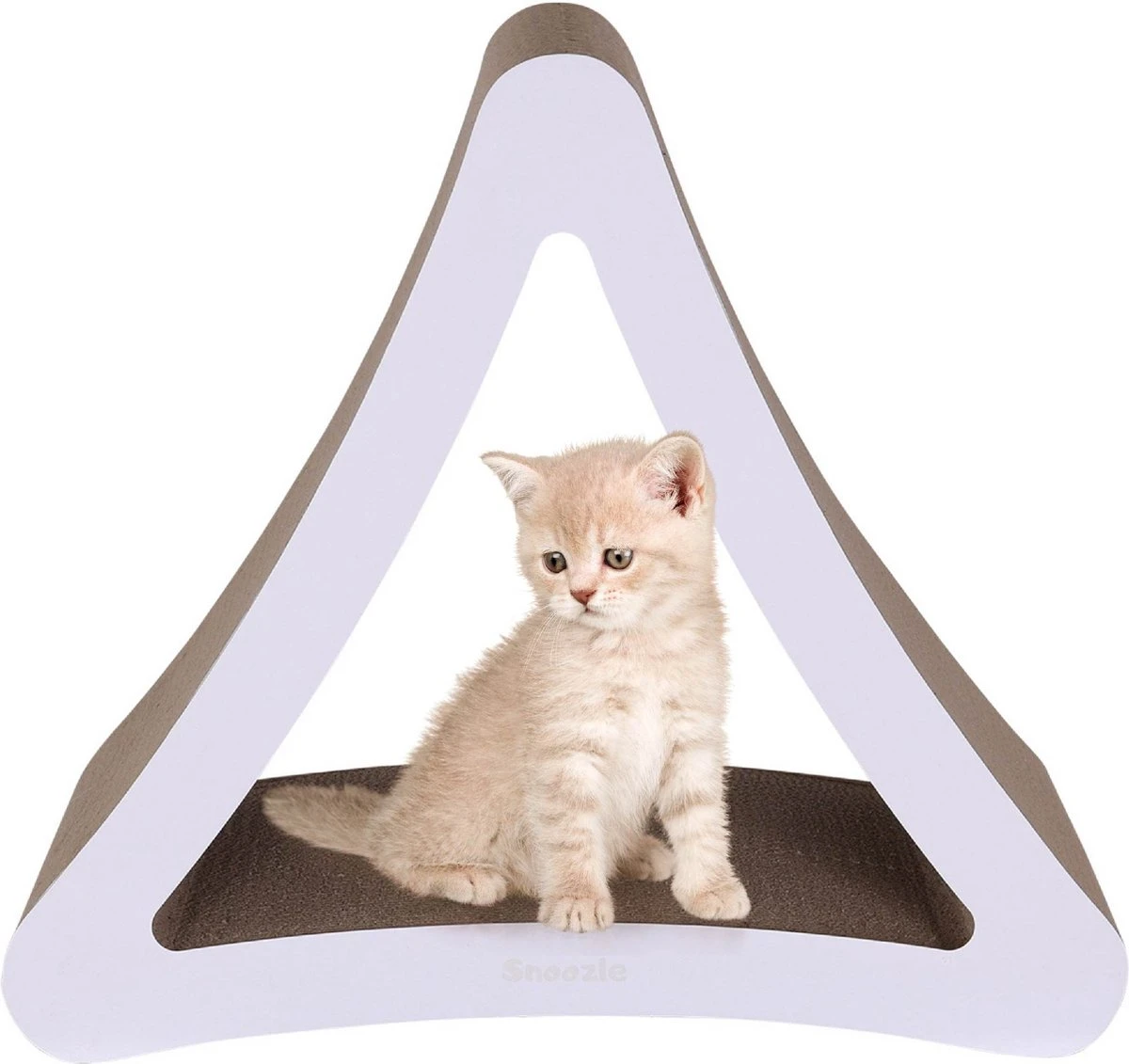 Elke kattenliefhebber kent de magische aantrekkingskracht van karton op je kat. Een saaie doos is voor je kat een walhalla. Maar zo’n doos is niet al te stevig, functioneel of (toch ook best belangrijk) niet al te mooi. Krabpaal Snoozle Pyramid is een kartonnen design krabpaal die volledig gebaseerd is op de magische werking van karton, maar dan veel beter en laten we wel zijn veel mooier!