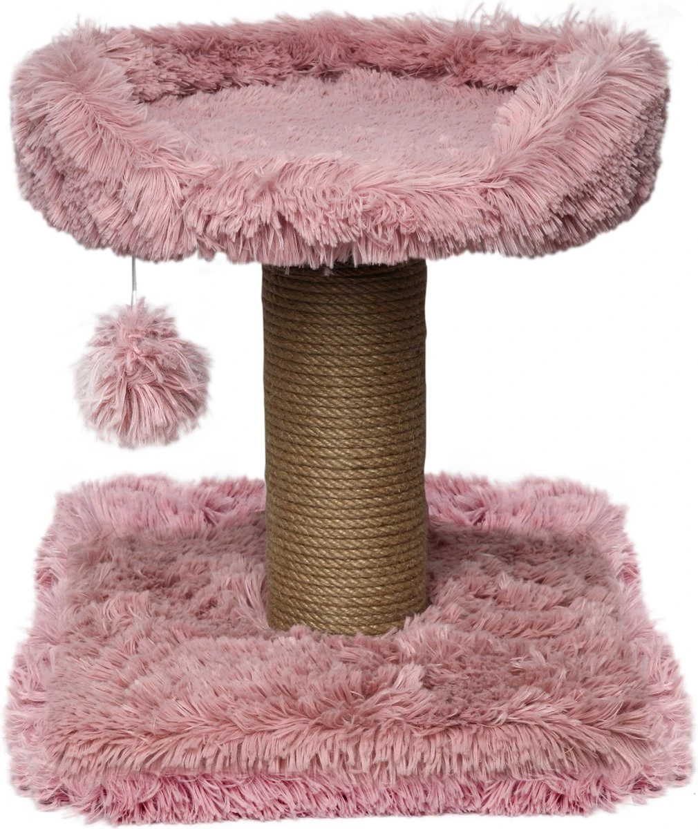 Topmast Krabpaal Fluffy Carasco – Roze – 39 X 39 X 40 Cm – Made In EU – Krabpaal Voor Katten – Met Kattenmand – Sterk Sisal Touw