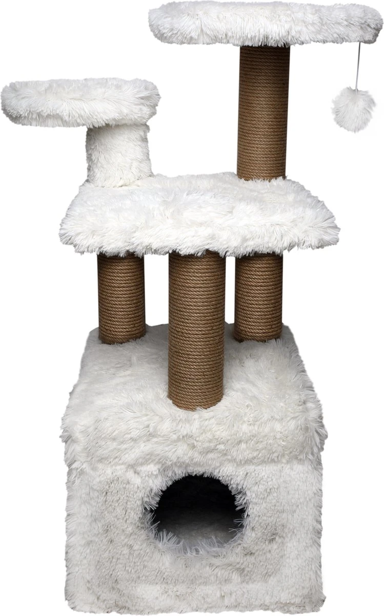 Topmast Krabpaal Fluffy Isola – Wit – 52 X 67 X 100 Cm – Made In EU – Krabpaal Voor Katten – Met Kattenhuis – Sterk Sisal Touw