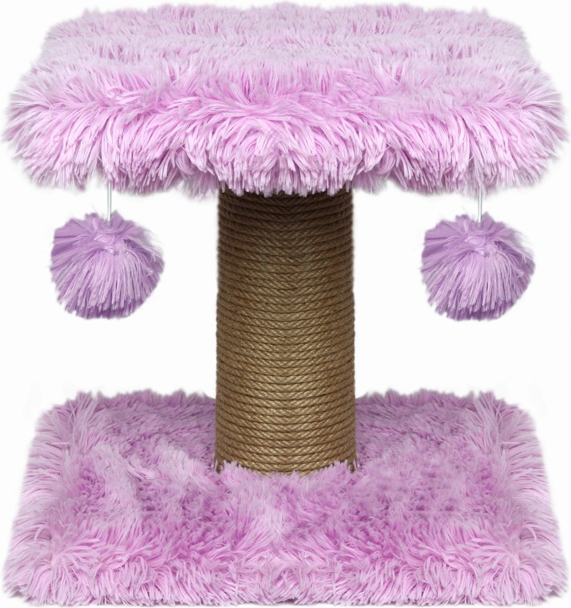 Topmast Krabpaal Fluffy Langhaar – Nairobi – Lila – 34 X 34 X 34 Cm – Krabpaal Voor Katten – Met Kattenspeeltjes – Duurzaam Sisal Touw
