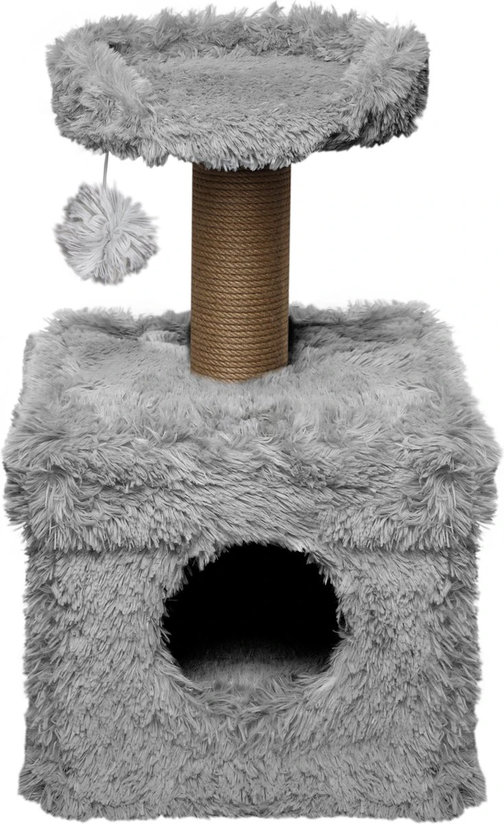 Topmast Krabpaal Fluffy Lima – Grijs – 39 X 39 X 72 Cm – Made In EU – Krabpaal Voor Katten – Met Kattenhuis – Sterk Sisal Touw