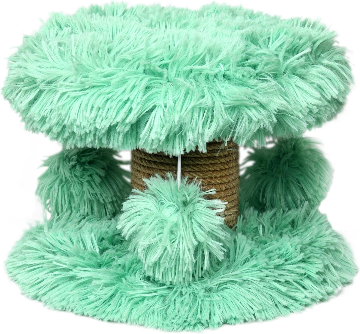 Topmast Krabpaal Fluffy Lycia – Groen – 25 X 25 X 20 Cm – Made In EU – Krabpaal Voor Kittens – Met Kattenspeeltjes – Sterk Sisal Touw – Mini Krabpaal