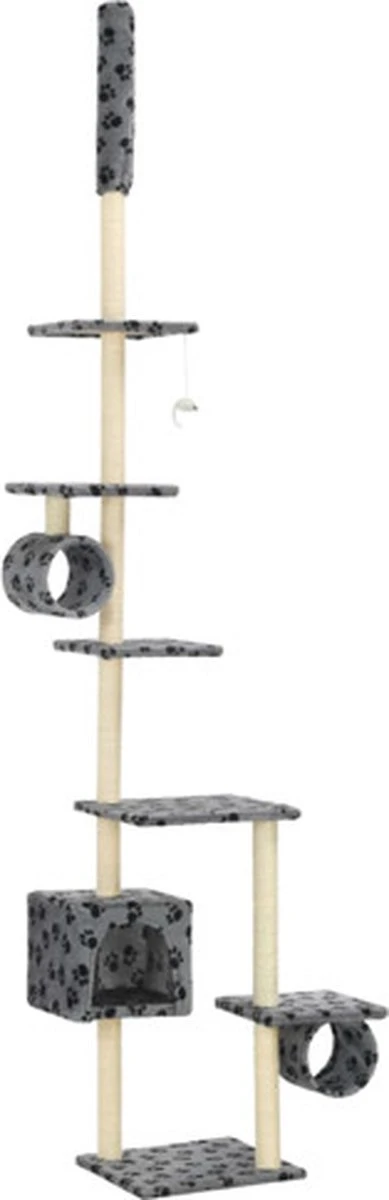 Je kattenvriendjes kunnen hun klauwen scherper maken met de krabpalen die met sisaltouw omwikkeld zijn. Dit zorgt voor een gezonde uitlaatklep voor de krablust van je kat. Ze zullen het ook heerlijk vinden om achter elkaar aan te rennen terwijl ze van en op dit leuke speelmeubel springen. Er is een bungelend speeltje dat je nieuwsgierige katten zal vermaken. Wanneer ze genoeg gespeeld hebben kunnen je kleine vriendjes uitrusten op de bovenste platformen, waar ze een beter uitzicht hebben. Ze kunnen zich ook verstoppen in het knusse huisje en de tunnels om een dutje te doen.