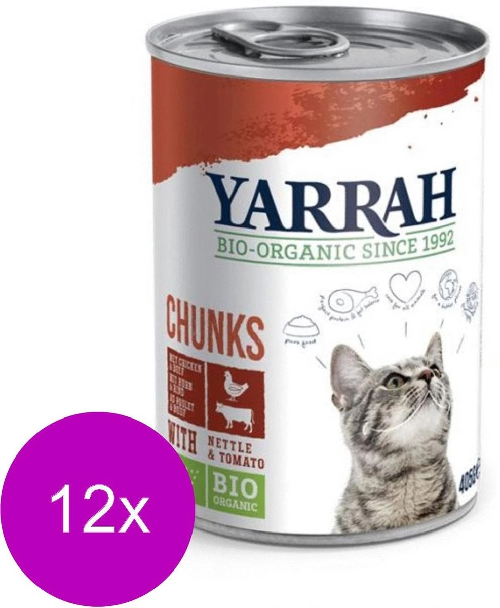Overheerlijke chunks met biologische kip en rund. aangevuld met biologisch gecertificeerde brandnetel en tomaat. Geschikt voor alle kattensoorten en leeftijden. van kittens tot senior katten. Het biologische natvoer vormt een complete. voedzame en zeer smakelijke maaltijd voor je kat. Zuiver voer. vrij van kunstmatige toevoegingen. pesticiden en GMO. waarbij de best opneembare eiwitten zijn geselecteerd. Zo krijgt je kat precies binnen wat hij nodig heeft. Katten zijn gek op de brokjes in saus. De kleine stukjes zijn makkelijk te eten. De smaken van het vlees zijn in de saus getrokken. waardoor het natvoer nog beter smaakt.